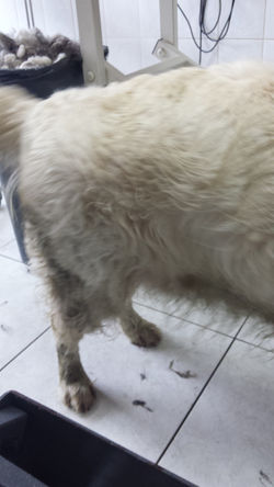 ![]() | ![]() Djazzy de Golden Retriever na het trimmen |